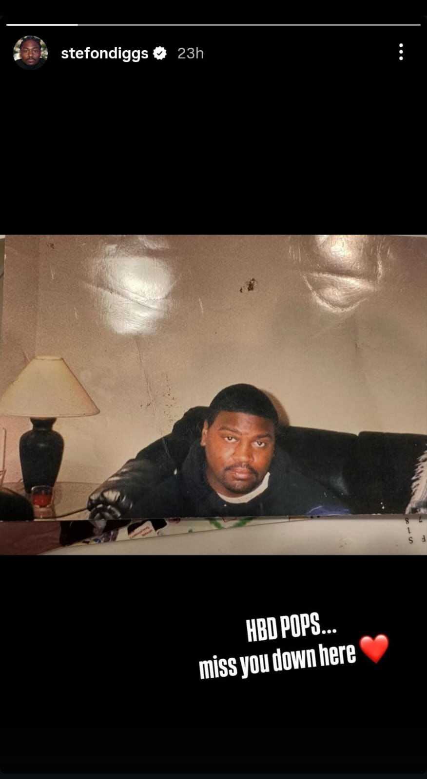 Stefon Diggs took a quiet pause this week to honor the man who shaped his life long before football fame entered the picture. Far away from the gridiron noise and lights, the New England Patriots’ wide receiver took to his Instagram to share a heartfelt message remembering his late father, Aron Diggs, marking his dad’s heavenly birthday with a brief but deeply personal caption.