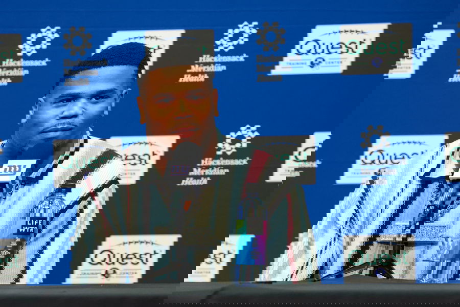 NFL, American Football Herren, USA New York Giants press conference, PK, Pressekonferenz Apr 25, 2025 East Rutherford, NJ, US New York Giants first round draft pick, Abdul Carter, takes questions from the media during his introduction press conference. New York Giants East Rutherford NJ US, EDITORIAL USE ONLY PUBLICATIONxINxGERxSUIxAUTxONLY Copyright: xThomasxSalusx 20250425_jla_nn9_104