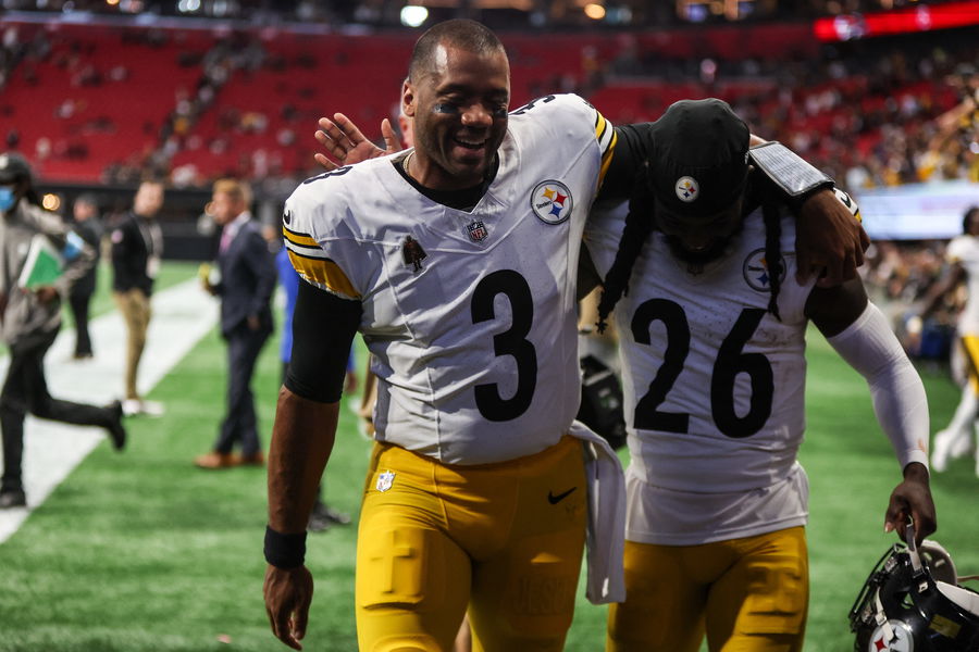 ATLANTA, GEORGIA – SEPTEMBER 08: Russell Wilson #3 of the Pittsburgh Steelers looks on prior to a game against the Atlanta Falcons at Mercedes-Benz Stadium on September 08, 2024 in Atlanta, Georgia. (Photo by Todd Kirkland/Getty Images)