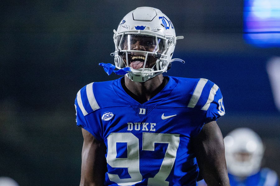 Several late-round defensive line prospects impressed scouts during the Blue Devils’ workout, which took place on Monday, with tackle Aaron Hall leading the way. The star of Shrine Bowl practice, Hall measured just over 6-foot-4 and 297 pounds. He timed as fast as 4.92 seconds in the 40, 7.2 seconds in the three-cone, and 4.28 seconds in the short shuttle. Hall touched 32 inches in the vertical jump and 9-foot-7 in the broad jump. All were terrific marks.