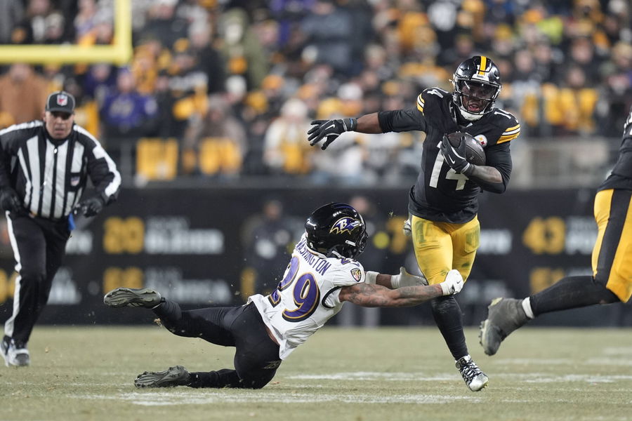 January 4, 2026, Pittsburgh, Pennsylvania, USA: January 4, 2026: Kenneth Gainwell 14 and Arà Darius Washington 29 during the Pittsburgh Steelers vs Baltimore Ravens at Acrisure Stadium in Pittsburgh PA. Brook Ward / Apparent Media Group. Pittsburgh USA – ZUMAa234 20260104_zsa_a234_215 Copyright: xAMGx
