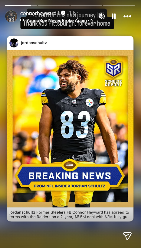 “Excited for the new journey,” Heyward captioned his story while sharing a post by Jordan Schultz. “Thank you, Pittsburgh, forever home.”