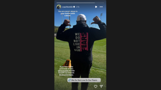 His wife, Kiya Tomlin, is also a huge force in this effort. She has worked extensively with cancer charities, including her involvement with Cancer Bridges, an organization they both clearly feel strongly about. This commitment has now made its way into fashion! Coach Tomlin was recently seen wearing a striking black hoodie from Kiya’s fashion line, emblazoned with the powerful, graffiti-style message: “We do not live in our fears.” But this isn’t the best part.
