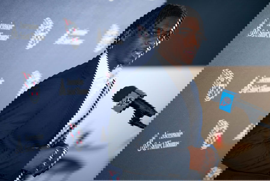 NFL, American Football Herren, USA Tennessee Titans-Cameron Ward press conference, PK, Pressekonferenz Cam Ward fields questions after being introduced as the Tennessee Titans first-round pick and number one overall pick n the NFL Draft at Ascension Saint Thomas Sports Park in Nashville, Tenn., Friday, April 25, 2025. Nashville Tennessee USA, EDITORIAL USE ONLY PUBLICATIONxINxGERxSUIxAUTxONLY Copyright: xDennyxSimmonsx 20250425_jla_usa_053