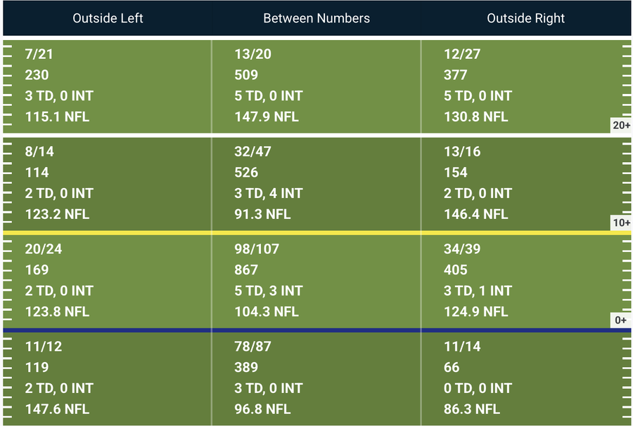 Just look at his passing chart from last season, and you’ll see just how good he was throwing to every single area on the field.