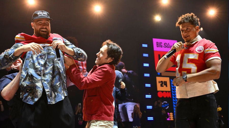 “Get some powder. Get some baby powder,” Paul Rudd jokingly quipped as Patrick Mahomes and Travis Kelce struggled to squeeze into their jerseys, setting the stage for a night of hilarity and camaraderie at the Kansas City Big Slick 2024 charity event.