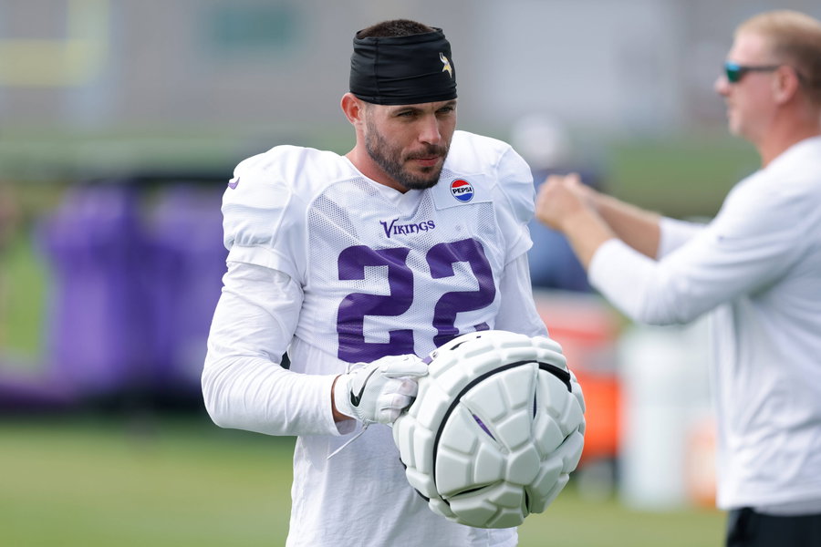 EAGAN, MN – AUGUST 02: Minnesota Vikings safety Harrison Smith 22 looks on during Minnesota Vikings Training Camp at TCO Performance Center on August 2, 2025 in Eagan, Minnesota. Photo by Bailey Hillesheim/Icon Sportswire NFL, American Football Herren, USA AUG 02 Minnesota Vikings Training Camp EDITORIAL USE ONLY Icon250802004