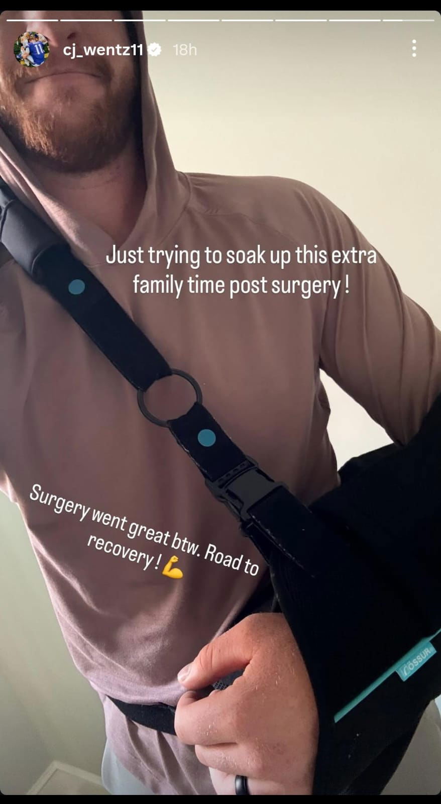 Carson Wentz put up an Instagram story with a picture of his left arm in a sling. He also dropped a short message in it, which felt like a solid update.