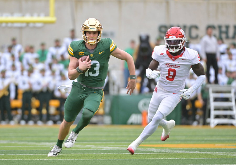 NCAA, College League, USA Football 2025: Houston Vs Baylor NOV 29 November 29, 2025 Houston Cougars linebacker Corey Platt Jr. 9 pursues Baylor Bears quarterback Sawyer Robertson 13 runs with the ball during the 1st half of the NCAA Football game between Houston Cougars the and Baylor Bears at McLane Stadium in Waco, Texas. Matthew Lynch/CSM Credit Image: Matthew Lynch/Cal Media Waco Tx US EDITORIAL USE ONLY Copyright: xx ZUMA-20251129_zma_c04_710.jpg MatthewxLynchx csmphotothree452594