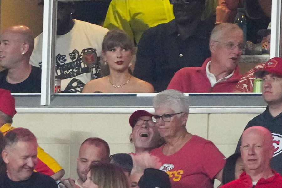 Oct 7, 2024; Kansas City, Missouri, USA; Recording artist Taylor Swift watches play during the first half of the game between the Kansas City Chiefs and New Orleans Saints at GEHA Field at Arrowhead Stadium. Mandatory Credit: Denny Medley-Imagn Images