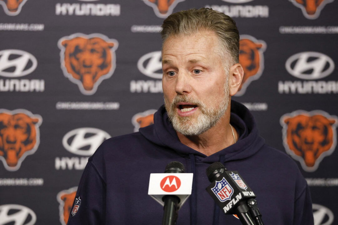 May 31, 2024; Lake Forest, IL, USA; Chicago Bears head coach Matt Eberflus speaks during organized team activities at Halas Hall. Mandatory Credit: Kamil Krzaczynski-USA TODAY Sports