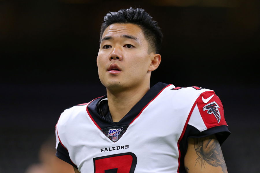 NEW ORLEANS, LOUISIANA – NOVEMBER 10: Younghoe Koo #7 of the Atlanta Falcons reacts before a game against the New Orleans Saints at the Mercedes Benz Superdome on November 10, 2019 in New Orleans, Louisiana. (Photo by Jonathan Bachman/Getty Images)