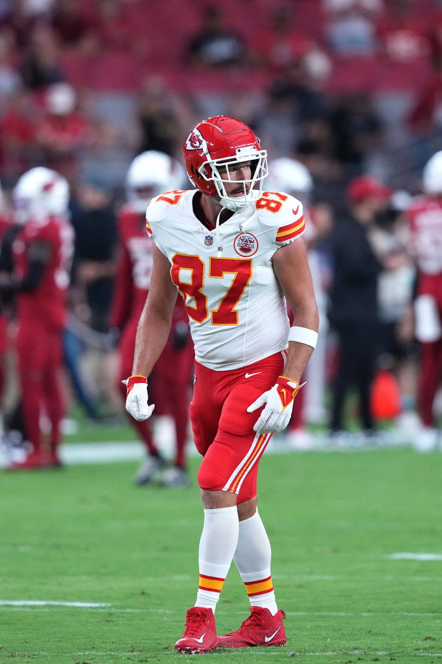 NFL, American Football Herren, USA Preseason-Kansas City Chiefs at Arizona Cardinals Aug 19, 2023 Glendale, Arizona, USA Kansas City Chiefs tight end Travis Kelce 87 warms up prior to facing the Arizona Cardinals at State Farm Stadium. Glendale State Farm Stadium Arizona USA, EDITORIAL USE ONLY PUBLICATIONxINxGERxSUIxAUTxONLY Copyright: xJoexCamporealex 20230813_jca_aa9_005
