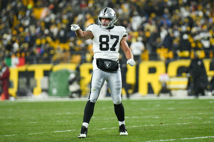 December 24, 2022, Pittsburgh, Pennsylvania, USA: December 24th, 2022 Las Vegas Raiders tight end Foster Moreau 87 during Pittsburgh Steelers vs Las Vegas Raiders in Pittsburgh, PA. Jake Mysliwczyk/BMR Pittsburgh USA – ZUMAb241 20221224_zsa_b241_055 Copyright: xJakexMysliwczykx/xBmrxMediax