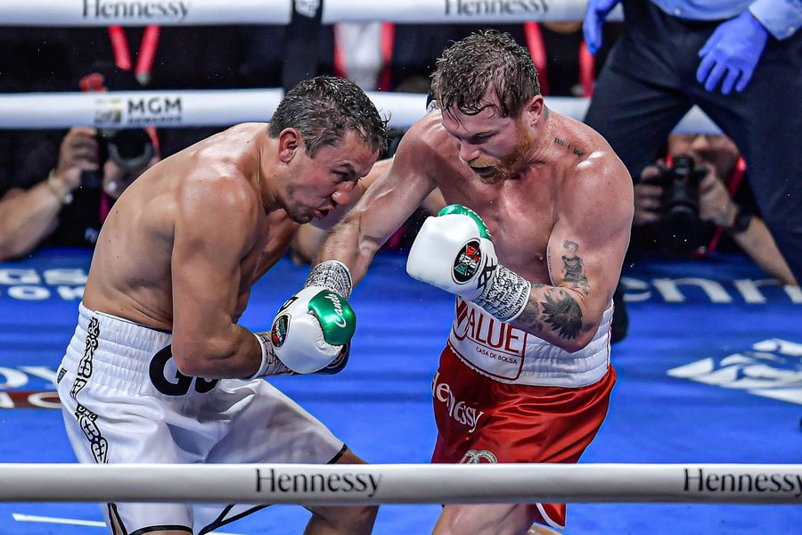 Boxeo 2022 Saul – Canelo- Alvarez MEX vs Gennady Golovkin KAZ Fight September 17, 2022 Las Vegas, Nevada, United States L-R, Gennady Golovkin KAZ and Saul – Canelo- Alvarez MEX during the fight the for Canelos undisputed super middleweight title at T-Mobile Arena. brbr 17 de septiembre de 2022 Las Vegas, Nevada, Estados Unidos I-D, Gennady Golovkin KAZ y Saul – Canelo- Alvarez MEX durante la pelea por el titulo indiscutible de peso super mediano de Canelo, en T-Mobile Arena. LAS VEGAS NEVADA ESTADOS UNIDOS PUBLICATIONxNOTxINxMEXxCHNxRUS Copyright: xAdrianxMaciasx 20220918004325_BOX_22_FIGHT_ALV_GOL_ALVAREZ71