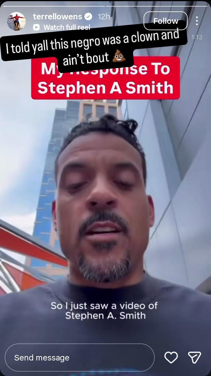 Terrell Owens has clearly chosen his side. And T.O’s decision to go against Smith shouldn’t come as a surprise. Previously, the former wide receiver blamed Smith for twisting the narrative and tarnishing his name. On the All The Smoke podcast, Owens said that Stephen misrepresented him and that the sports analyst has a “negative energy” around him.