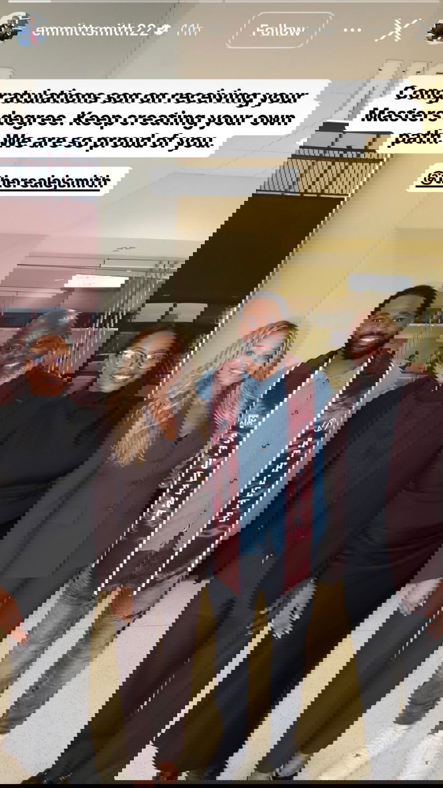 “Congratulations son on receiving your Masters degree,” Emmitt Smith wrote in the caption of his Instagram Story. “Keep creating your own path. We are so proud of you.”