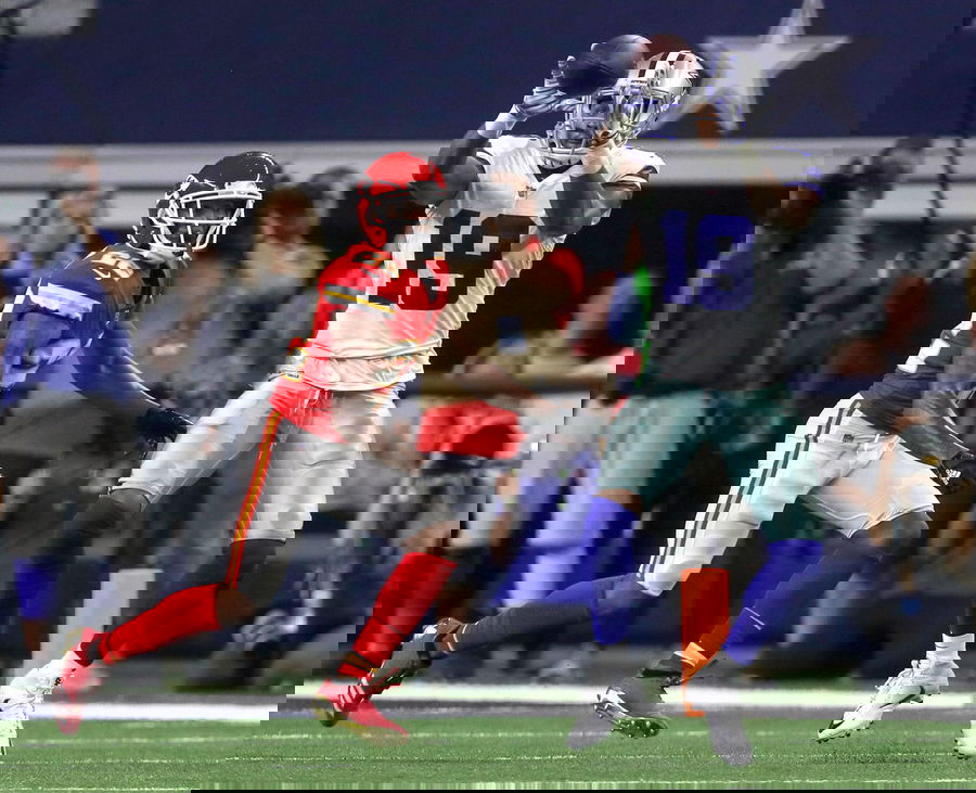 Kansas City Chiefs vs. Dallas Cowboys Dallas Cowboys wide receiver Brice Butler 19 comes up with a reception in front of Kansas City cornerback Marcus Peters during the fourth quarter on Sunday, Nov. 5, 2017 at AT&T Stadium in Arlington, Texas. Steve Nurenberg/Fort Worth Star-Telegram/TNS Arlington TX USA EDITORIAL USE ONLY Copyright: xx 1215155 StevexNurenbergx krtphotoslive807922