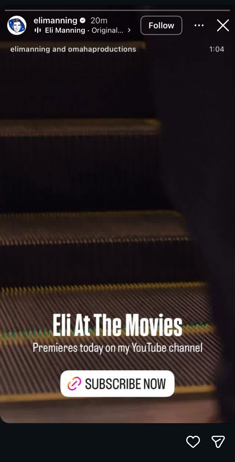 “We come to this place for magic.” The NFL legend said in the video. “We come to my YouTube channel to laugh, to cry, to care, because we need that, all of us. That indescribable feeling we get when we get a notification on our phone. And we realize that I’ve posted a new video…the sound of my voice in your AirPods. Somehow, sports movies feel better in a place like this…this is Eli at the Movies.”