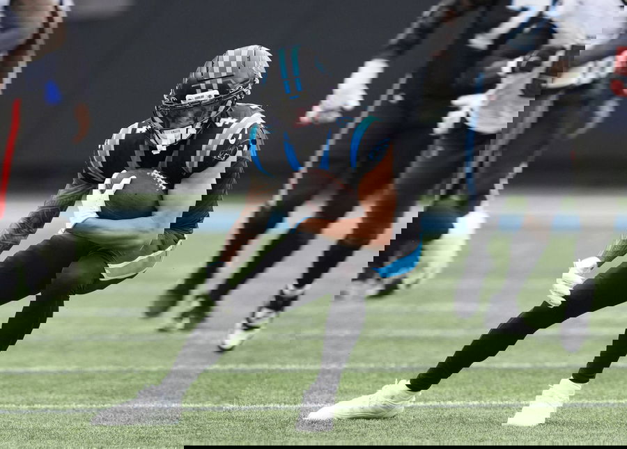 NFL, American Football Herren, USA Tampa Bay Buccaneers at Carolina Panthers Dec 21, 2025 Charlotte, North Carolina, USA Carolina Panthers wide receiver Tetairoa McMillan 4 runs during the first half against the Tampa Bay Buccaneers at Bank of America Stadium. Charlotte Bank of America Stadium North Carolina USA, EDITORIAL USE ONLY PUBLICATIONxINxGERxSUIxAUTxONLY Copyright: xJimxDedmonx 20251221_jhp_db2_0233