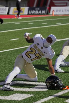 November 23 2023: Buffaloes cornerback Nahmier Robinson 27 in action before the game with Colorado Buffaloes and Utah Utes held at Rice-Eccles Stadium in Salt Lake Ut. David Seelig/Cal Medi Salt Lake City USA – ZUMAc04_ 20231124_zma_c04_505 Copyright: xDavidxSeeligx/xCalxSportxMediax