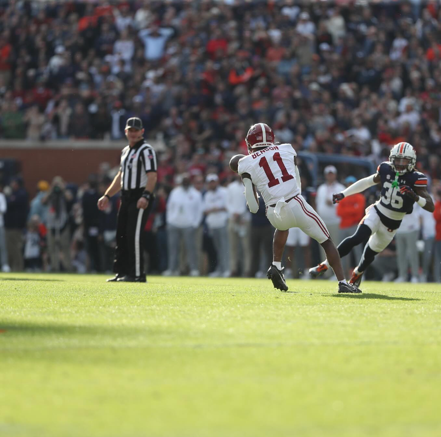 Malik Benson has made his mark in the college football world in the last few years as a wide receiver. A former JUCO prospect, Benson showed some promising performance at Alabama before entering the NCAA Transfer Portal after the season: 13 receptions for 162 yards at 12.5 yards per catch, scoring 1 touchdown, with his longest catch at 33 yards. Though the WR had no carries or rushing yards this season, he did not fumble either.