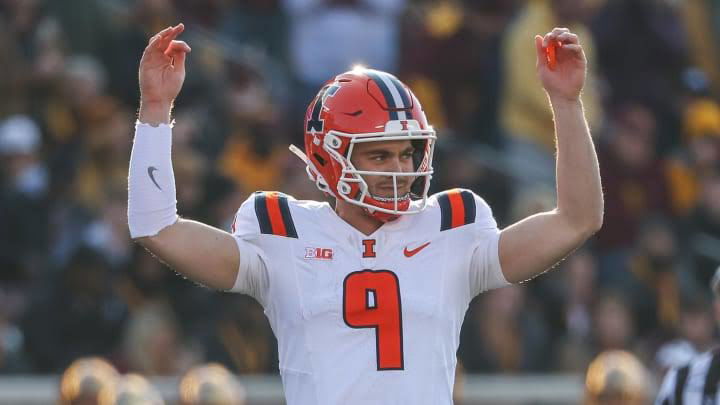 “I’ve had so many great people to kind of help me with that transition with the coaches, here teammates, and even the community,” said Luke Altmyer while reflecting on his journey to get settled as the quarterback of Illinois and acknowledging the role played by his fellow players and coaches in helping him do that.