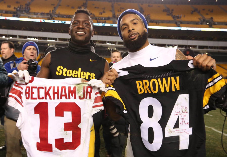 NFL, American Football Herren, USA New York Giants at Pittsburgh Steelers, Dec 4, 2016 Pittsburgh, PA, USA Pittsburgh Steelers wide receiver Antonio Brown L and New York Giants wide receiver Odell Beckham R exchange jerseys after their game at Heinz Field. The Steelers won 24-14. Mandatory Credit: Charles LeClaire-USA TODAY Sports, 04.12.2016 19:34:48, 9725986, PUBLICATIONxINxGERxSUIxAUTxONLY Copyright: xCharlesxLeClairex 9725986 “Image Credits: Imago”