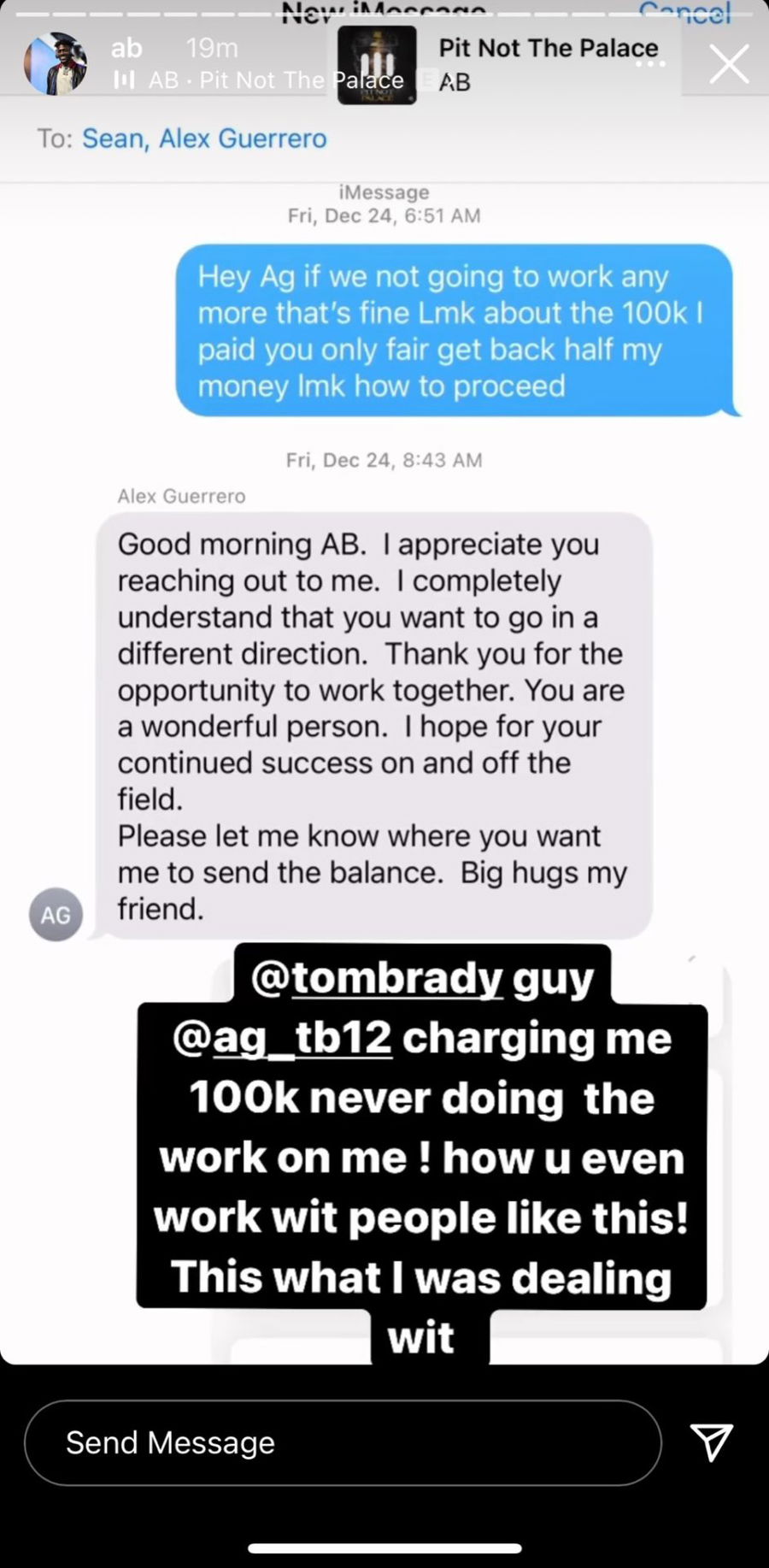 The screenshot shared by AB was time-stamped to the morning of Christmas Eve. And although it is hard to tell what has been happening between them. But as far as the screenshot is concerned, Gurrero sounds amenable to pay Brown the required sum. However, AB paints it in a way to make it look quite the opposite.