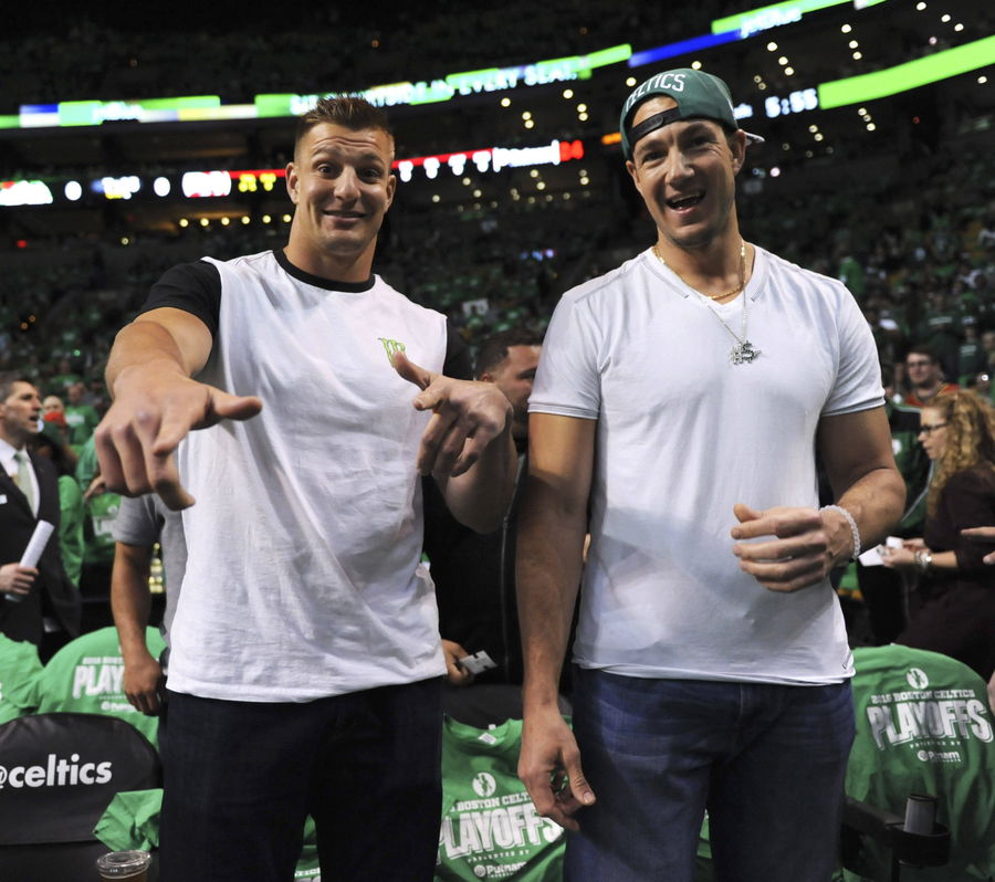 NBA, Basketball Herren, USA Playoffs-Atlanta Hawks at Boston Celtics Apr 24, 2016 Boston, MA, USA New England Patriot tight end Rob Gronkowski and his brother Gordie pose for a photo prior to the start of game four of the first round of the NBA Playoffs between the Boston Celtics and Atlanta Hawks at TD Garden. Boston TD Garden MA USA, EDITORIAL USE ONLY PUBLICATIONxINxGERxSUIxAUTxONLY Copyright: xBobxDeChiarax 9267834
