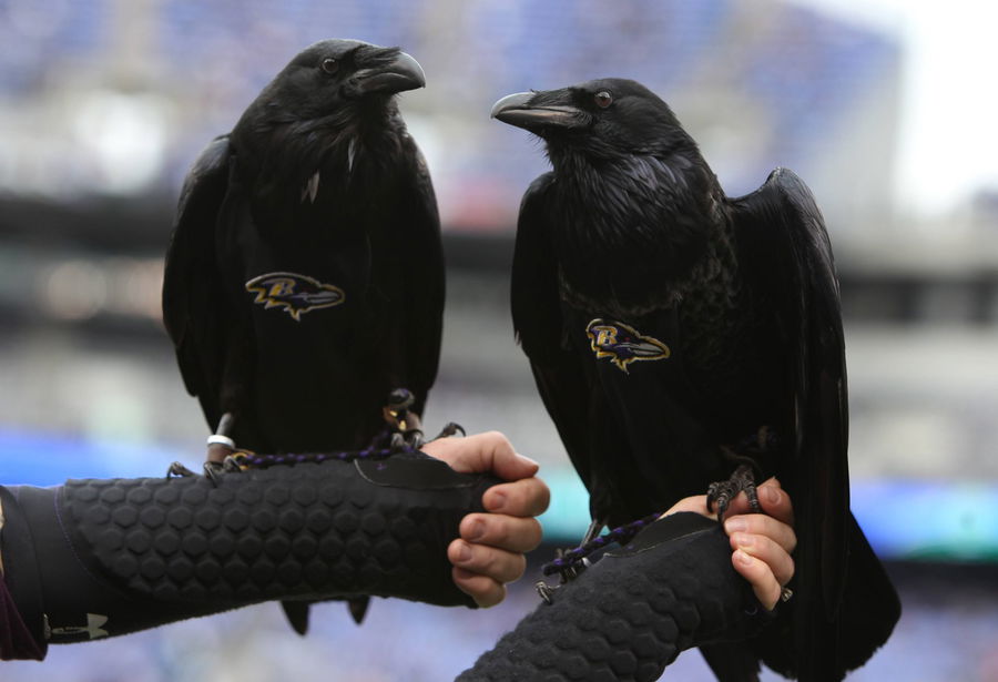 Dec. 28, 2014 – Baltimore, Maryland, United States – Baltimore Ravens mascots Rise (L) and Conquer before the game against the Cleveland Browns on December 28, 2014 at M&T Bank Stadium. NFL American Football Herren USA 2014 – Ravens Beat Browns 20-10 – ZUMAw109