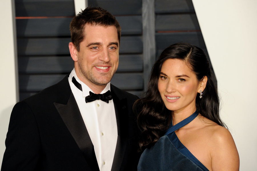 BEVERLY HILLS, CA – FEBRUARY 22: Aaron Rodgers and Olivia Munn attend the 2015 Vanity Fair Oscar Party hosted by Graydon Carter at Wallis Annenberg Center for the Performing Arts on February 22, 2015 in Beverly Hills, California. (Photo by Allen Berezovsky/WireImage)