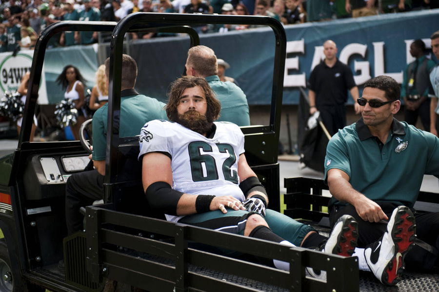 NFL, American Football Herren, USA Baltimore Ravens at Philadelphia Eagles Sep 16, 2012 Philadelphia, PA, USA Philadelphia Eagles center Jason Kelce 62 is carted off the field with an injury during the third quarter against the Baltimore Ravens at Lincoln Financial Field. The Eagles defeated the Ravens 24-23. Philadelphia Pennsylvania United States, EDITORIAL USE ONLY PUBLICATIONxINxGERxSUIxAUTxONLY Copyright: xHowardxSmith-USAxTODAYxSportsx 6586216
