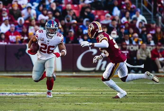 Saquon had a tremendous rookie season with the Giants in 2018. He set numerous league records as well. Barkley posted a 1,300+ yard rushing season at the end of his rookie year and also made the Pro Bowl team.