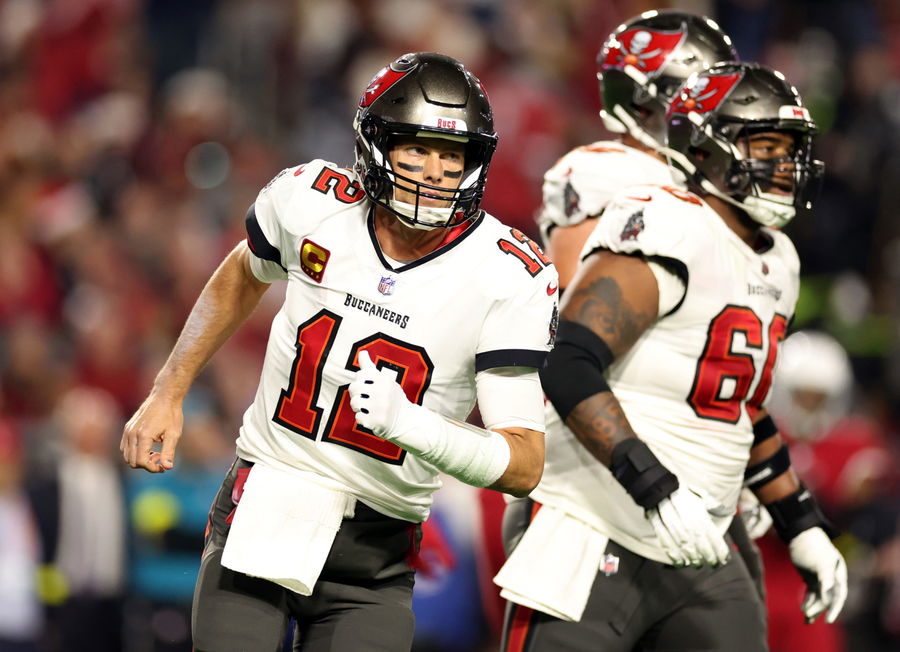 GLENDALE, ARIZONA – DECEMBER 25: Tom Brady #12 of the Tampa Bay Buccaneers reacts after a turnover on downs during the 1st quarter of the game against the Arizona Cardinals at State Farm Stadium on December 25, 2022 in Glendale, Arizona. (Photo by Christian Petersen/Getty Images)