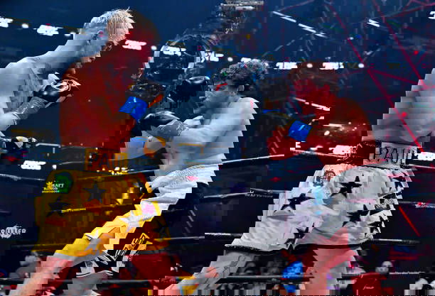 ATLANTA, GEORGIA – APRIL 17: Jake Paul fights Ben Askren in their cruiserweight bout during Triller Fight Club at Mercedes-Benz Stadium on April 17, 2021 in Atlanta, Georgia. (Photo by Jeff Kravitz/Getty Images for Triller)