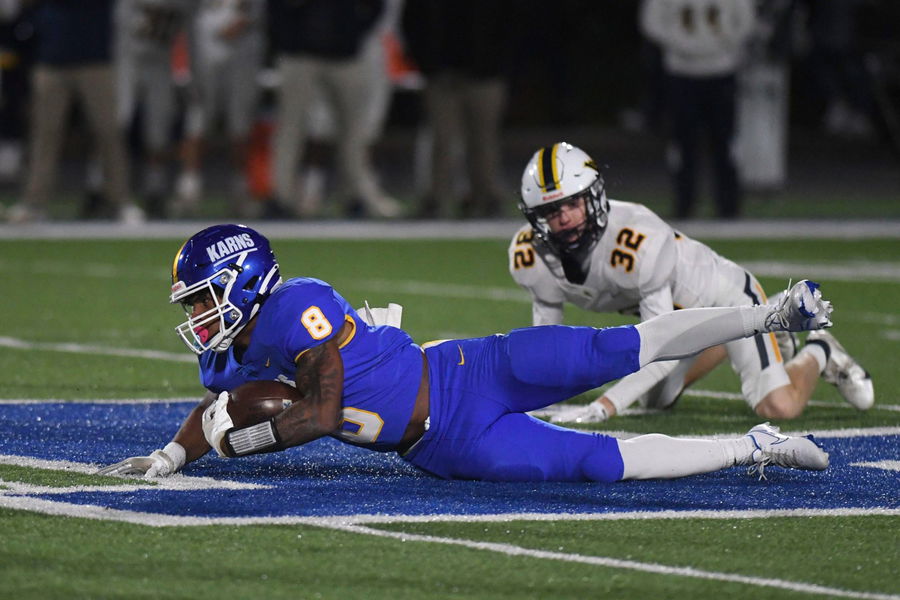 Syndication: The Knoxville News-Sentinel Karns DeSean Bishop 8 goes down on a tackle by Walker Valley s Brady Montgomery 32 during the first round game of the Class 5A State Football Playoffs between the Karns Beavers and Walker Valley Mustangs in Knoxville, Tenn. on Friday, November 5, 2021. Kns Karns Walker Valley Knoxville TN , EDITORIAL USE ONLY PUBLICATIONxINxGERxSUIxAUTxONLY Copyright: xSaulxYoung/NewsxSentinelx 17100697
