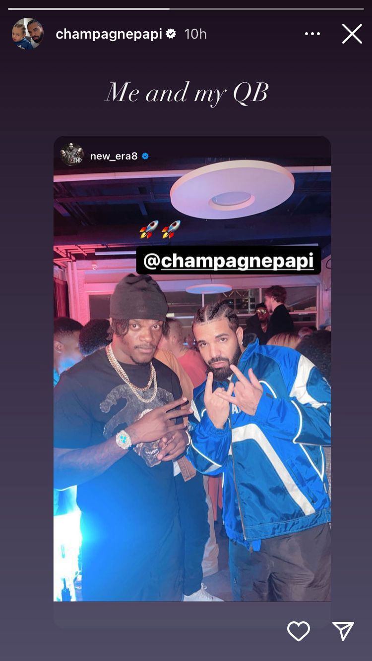 Recently, Drake took to Instagram to post a story with a famous NFL QB as he wrote alongside, “Me and my QB.” It would take a hard intuition to guess that that QB was in fact the Baltimore Ravens star QB Lamar Jackson. Jackson is indeed one of the elite QBs prevailing in the league right now.