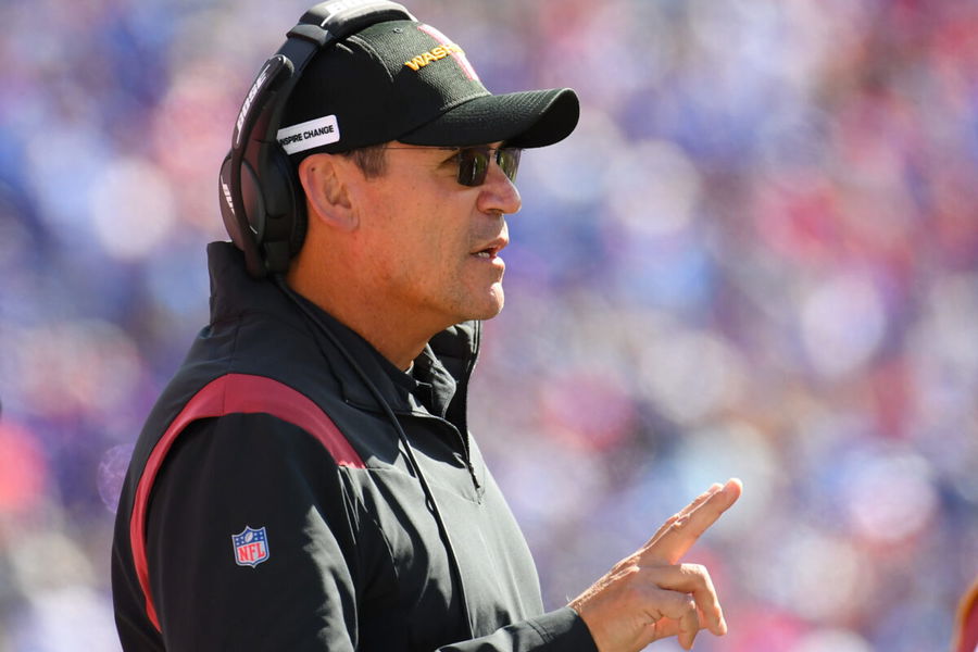 Sep 26, 2021; Orchard Park, New York, USA; Washington Football Team head coach Ron Rivera gestures against the Buffalo Bills during the first half at Highmark Stadium. Mandatory Credit: Rich Barnes-USA TODAY Sports| Reuters