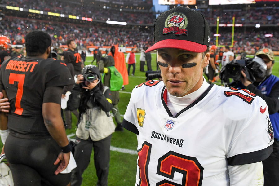 CLEVELAND, OHIO – NOVEMBER 27: Tom Brady #12 of the Tampa Bay Buccaneers walks off the field after the team’s 23-17 overtime loss to the Cleveland Browns at FirstEnergy Stadium on November 27, 2022 in Cleveland, Ohio. (Photo by Nick Cammett/Diamond Images via Getty Images)