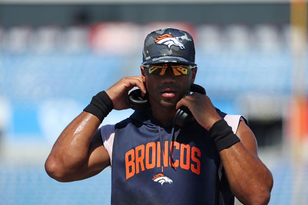 ORCHARD PARK, NY – AUGUST 20: Russell Wilson #3 of the Denver Broncos on the field before a preseason game against the Buffalo Bills at Highmark Stadium on August 20, 2022 in Orchard Park, New York. (Photo by Timothy T Ludwig/Getty Images)