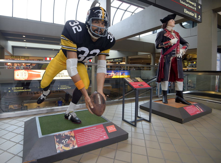 NFL, American Football Herren, USA Houston Texans at Pittsburgh Steelers Oct 20, 2014 Pittsburgh, PA, USA General view of the statues of Pittsburgh Steelers running back Franco Harris 32 and George Washington at the Pittsburgh International Airport to commemorate the immaculate reception against the Oakland Raiders in the 1972 AFC Divisional playoff game. Pittsburgh Heinz Field PA USA, EDITORIAL USE ONLY PUBLICATIONxINxGERxSUIxAUTxONLY Copyright: xKirbyxLeex 8153687