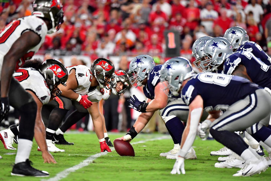 TAMPA, FLORIDA – SEPTEMBER 09: The Dallas Cowboys and the Tampa Bay Buccaneers line up during the second quarter at Raymond James Stadium on September 09, 2021 in Tampa, Florida. (Photo by Julio Aguilar/Getty Images)