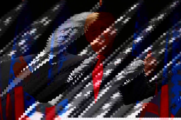 CLEVELAND, OH – JULY 21: Republican presidential candidate Donald Trump gives two thumbs up to the crowd during the evening session on the fourth day of the Republican National Convention on July 21, 2016 at the Quicken Loans Arena in Cleveland, Ohio. Republican presidential candidate Donald Trump received the number of votes needed to secure the party’s nomination. An estimated 50,000 people are expected in Cleveland, including hundreds of protesters and members of the media. The four-day Republican National Convention kicked off on July 18. (Photo by Chip Somodevilla/Getty Images)