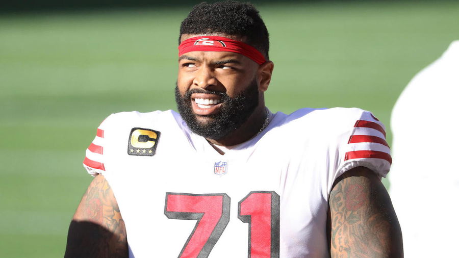 SEATTLE, WASHINGTON – NOVEMBER 01: Trent Williams #71 of the San Francisco 49ers looks on before their game against the Seattle Seahawks at CenturyLink Field on November 01, 2020 in Seattle, Washington. (Photo by Abbie Parr/Getty Images)