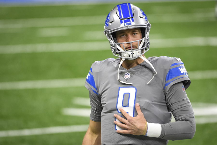 DETROIT, MICHIGAN – DECEMBER 26: Matthew Stafford #9 of the Detroit Lions warms up before the game against the Tampa Bay Buccaneers at Ford Field on December 26, 2020 in Detroit, Michigan. (Photo by Nic Antaya/Getty Images)