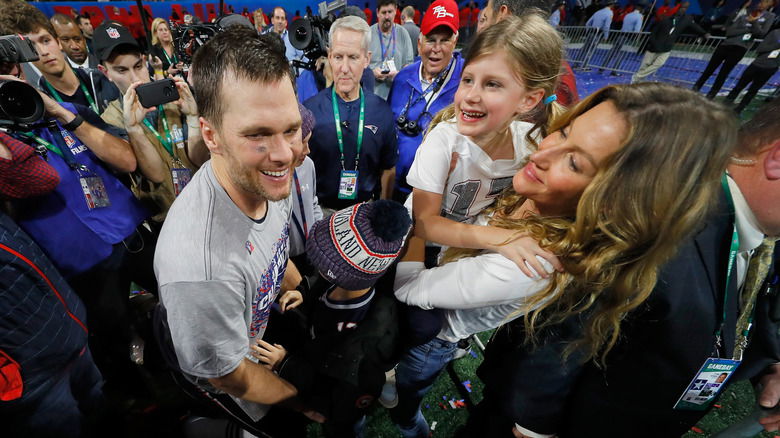 ATLANTA, GA – FEBRUARY 03: Tom Brady #12 of the New England Patriots celebrates with wife Gisele Bundchen and children Vivian and Benjamin after Super Bowl LIII at Mercedes-Benz Stadium on February 3, 2019 in Atlanta, Georgia. The New England Patriots defeat the Los Angeles Rams 13-3. (Photo by Kevin C. Cox/Getty Images)