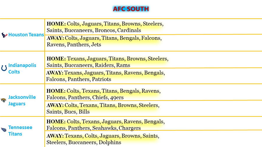 The 2023 NFL regular season schedule is out, and it?s packed with exciting games for every team. Here?s a quick overview of the home and away games for each team in the 2023 season (NFC-AFC, EAST-WEST-NORTH-SOUTH team chart):