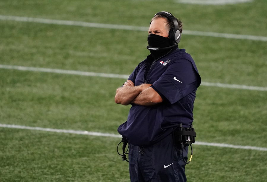 Oct 25, 2020; Foxborough, Massachusetts, USA; New England Patriots head coach Bill Belichick watches from the sideline as they take on the San Francisco 49ers in the second half at Gillette Stadium. Mandatory Credit: David Butler II-USA TODAY Sports