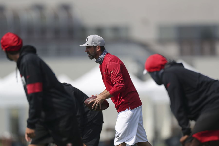 Aug 25, 2020; Santa Clara, CA, USA; San Francisco 49ers head coach Kyle Shanahan during training camp at SAP Performance Facility. Mandatory Credit: San Francisco 49ers/Pool Photo via USA TODAY Network